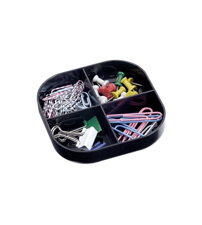 Organizador con 4 compartimentos para el pequeño material de oficina: clips, gomas, etc