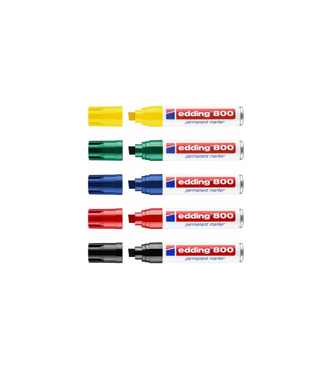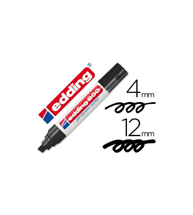 Marcador edding 800 punta sintética, tinta de secado rápido, resistente a la luz, al roce y al agua. Sin olor. Punta biselada. Doble trazo 4-12 mm.