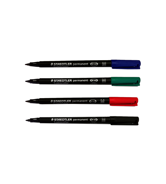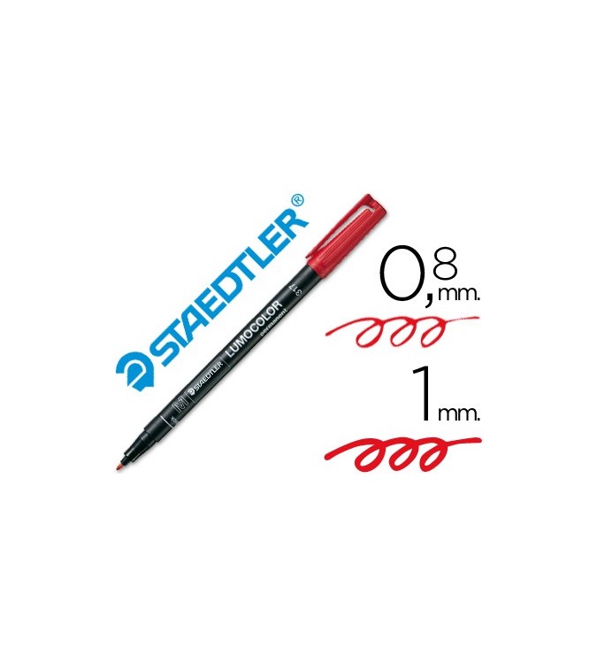 Rotulador lumocolor tinta permanente a base de alcohol, inodora. Apto para marcar sobre todas las superficies. Tinta antisecado.
