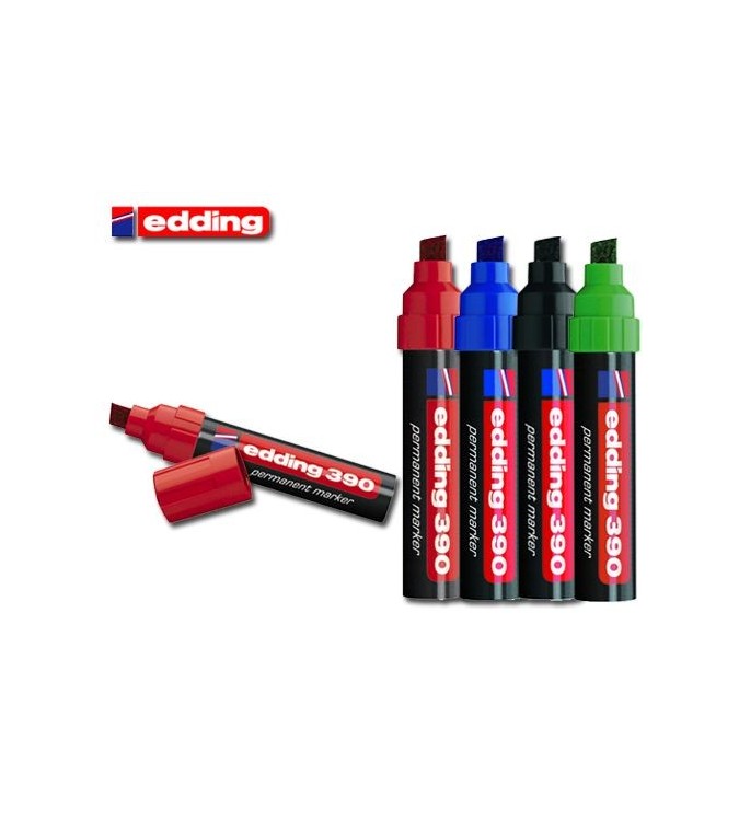 En muchos oficios es necesaria una escritura muy ancha que sea fácil de ver. El edding 390 es un práctico marcador permanente con una punta biselada ancha (de 4 a 12 mm), la opción ideal para este tipo de trabajos. Su tinta de alta durabilidad y resistente al desgaste puede aplicarse sobre un amplio abanico de materiales distintos.