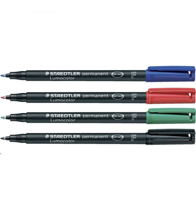 Rotulador lumocolor tinta permanente a base de alcohol, inodora. Apto para marcar sobre todas las superficies. Tinta antisecado.