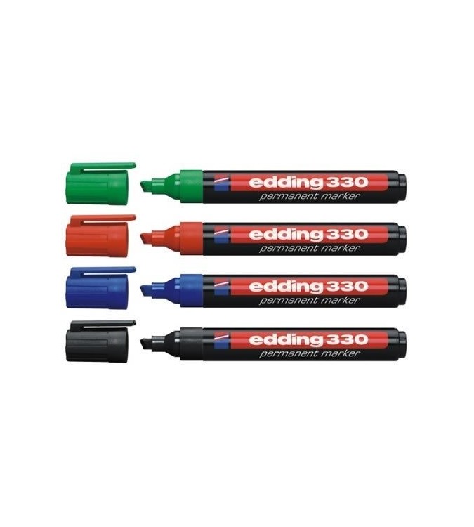 Marcador edding 330 con punta biselada. Cuerpo de plástico. Recargable con tintero mtk 25 trazo 1-5mm.