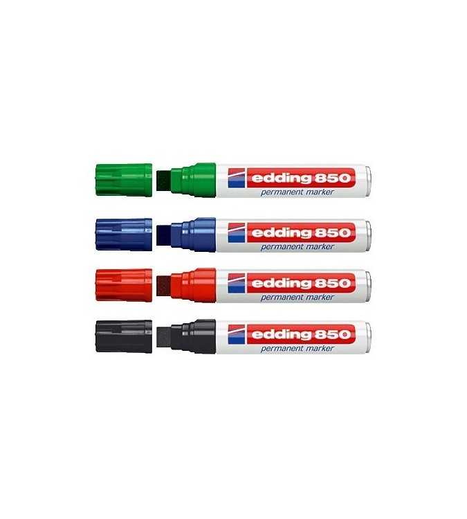 Marcador edding 850 punta sintética, tinta de secado rápido, resistente a la luz, al roce y al agua. Sin olor. Punta biselada. Doble trazo 5-16 mm.