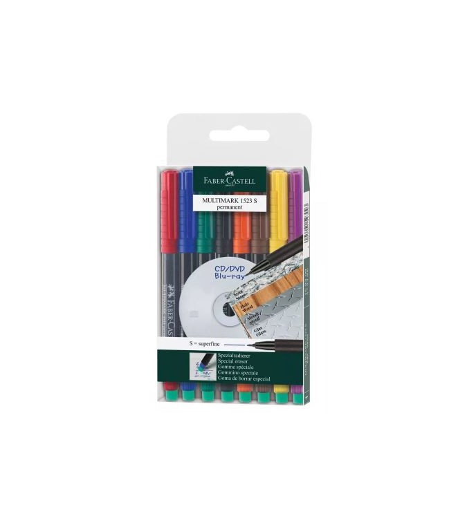 El rotulador técnico Multimark con goma de borrar especial integrada escribe sobre casi todas las superficies. Los rotuladores están disponibles en ocho colores de tinta permanente y cuatro no permanente. Colores intensos y luminosos. Las tintas negra, azul, verde y roja son especialmente resistentes a la acción de la luz. La goma de borrar especial integrada sirve para casi todo tipo de superficies lisas, incluyendo CD/DVD/Blu-ray o transparencias.