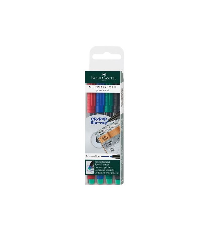El rotulador técnico Multimark con goma de borrar especial integrada escribe sobre casi todas las superficies. Los rotuladores están disponibles en ocho colores de tinta permanente y cuatro no permanente. Colores intensos y luminosos. Las tintas negra, azul, verde y roja son especialmente resistentes a la acción de la luz. La goma de borrar especial integrada sirve para casi todo tipo de superficies lisas, incluyendo CD/DVD/Blu-ray o transparencias.