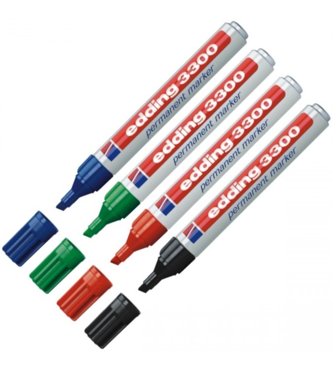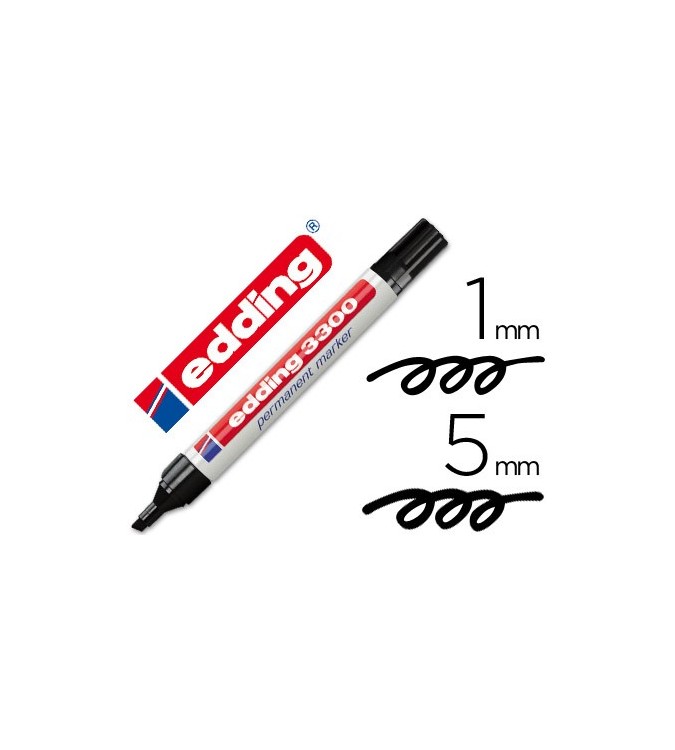 Marcador edding 3300 punta biselada. Para marcar sobre casi todsa las superficies, incluido metal, plastico y vidrio. Secado rápido trazo de 1-5 mm.