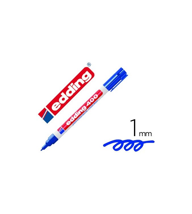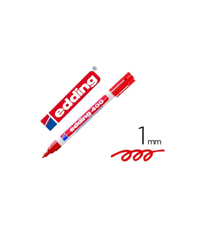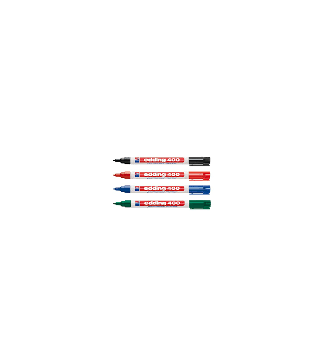 Marcador edding 400 punta redonda, tinta permanente casi sin olor. Rellenable. Cuerpo de plástico. Para marcar sobre casi todo tipo de superficies. Trazo: 1 mm.