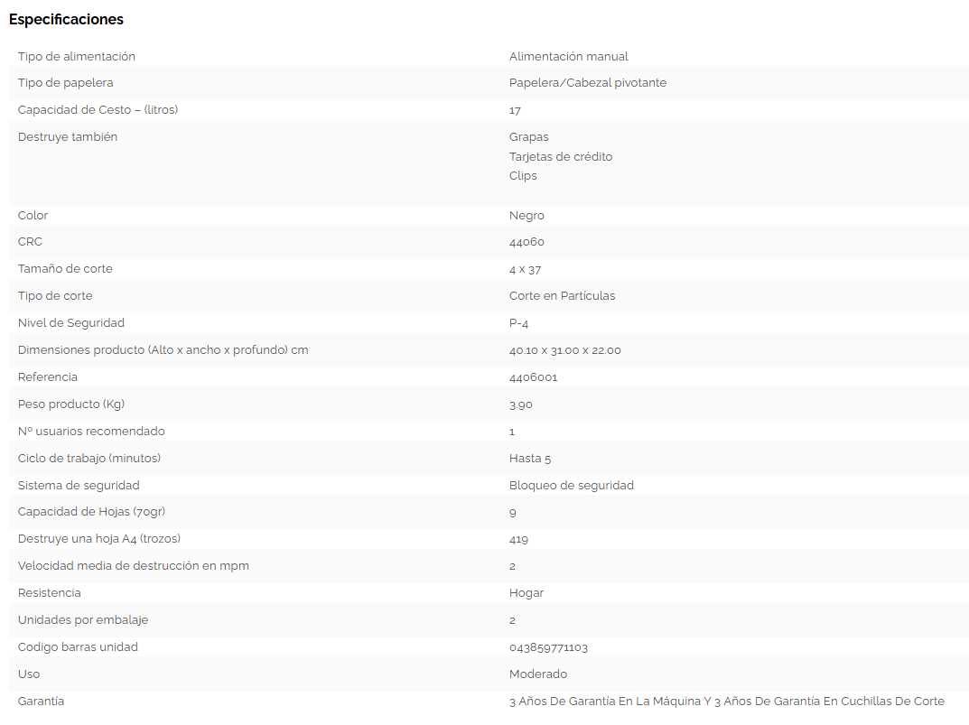 DESTRUYE TARJETAS DE CREDITO, GRAPAS Y CLIPS.