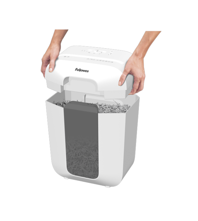 DESTRUCTORA FELLOWES LX50 9 HOJAS 17 LITROS BLANCO PARTICULAS P-4 CICLO 5 MINUTOS - USO OCACIONAL