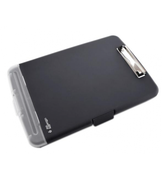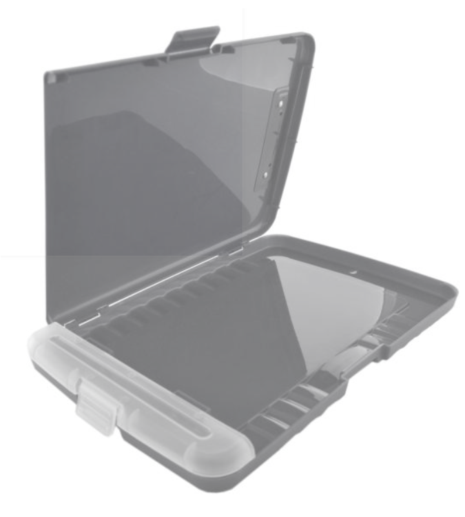 · Plástico muy rígido con pinza exterior metálica sujeta papeles en la parte superior y protectores de papel.