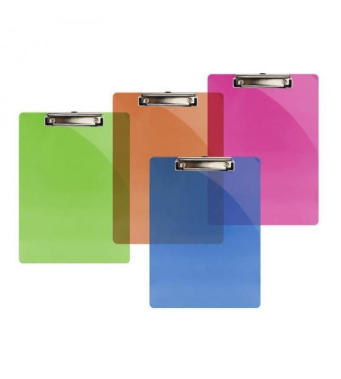 Placa sujetapapeles con pinza. Plataforma de plástico extra rígido con esquinas redondeadeas que proporciona una perfecta superfície de escritura.
