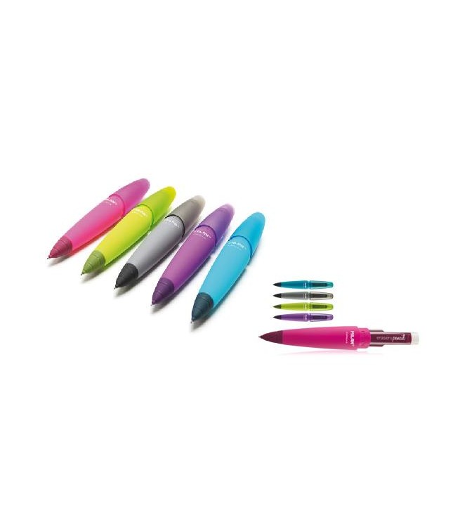 Portaminas eraser&pencil Capsule, goma extra-larga de calidad con capuchón, cuerpo con tacto de goma. Mina 0,7mm 2B que facilita la escritura.
