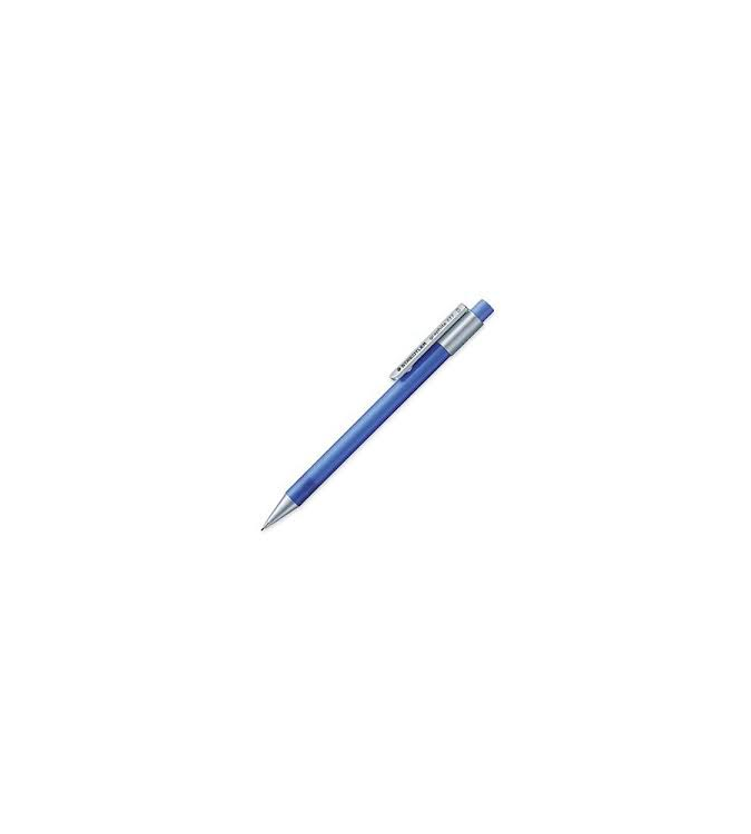 Portaminas con punta cónica de plástico. Clip de plástico azul, goma en el pulsador . Ø mina 0,5 mm.