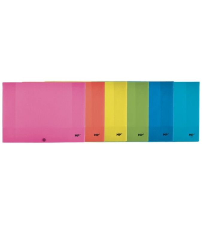 Carpeta sobre fabricada en polipropileno opaco con cierre de botón.