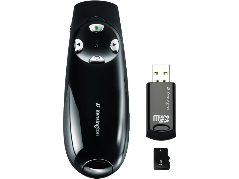 Los prácticos botones LED retroiluminados mueven sin problemas las diapositivas de presentaciones PowerPoint o Keynote, además de la opción de pantalla a negro y un botón para activar el puntero láser verde