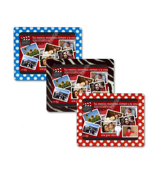 Alfombrilla ultra ligera, delgada y antideslizante. Valida para todos los tipos de ratones. Con marco para fotos hasta 190X150. Se adhiere sin pegamento. Medidas 230X190. 3 modelos surtidos.