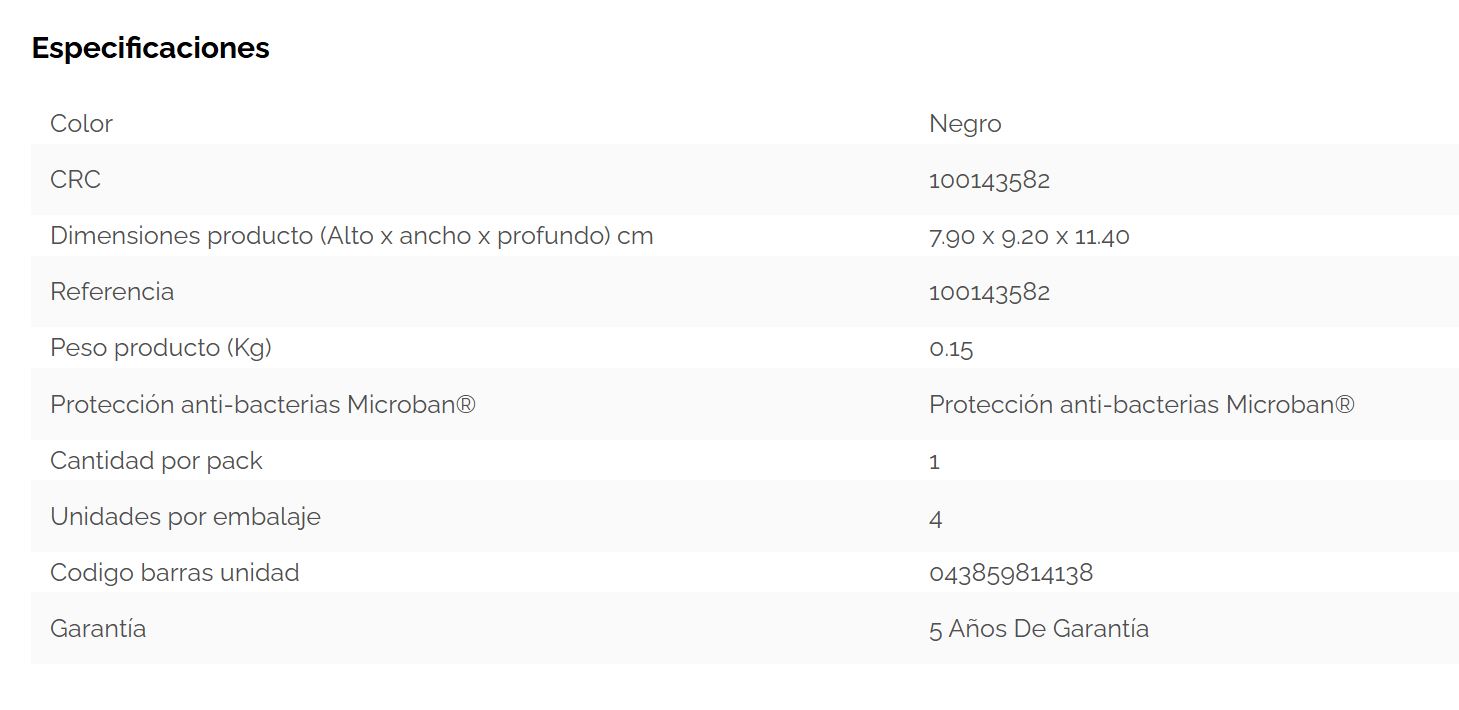 • La tecnología Microban® incorporada ayuda a prevenir la proliferación de bacterias, funcionando las 24 horas del día, los 7 días de la semana, para una mayor protección del producto.