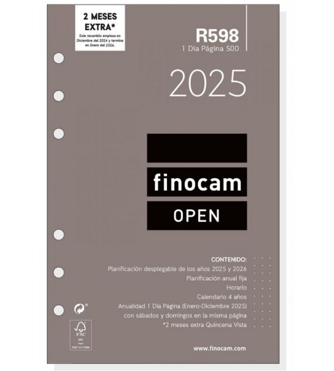 RECAMBIO AGENDA 2025 FINOCAM OPEN R598 DIA PAGINA