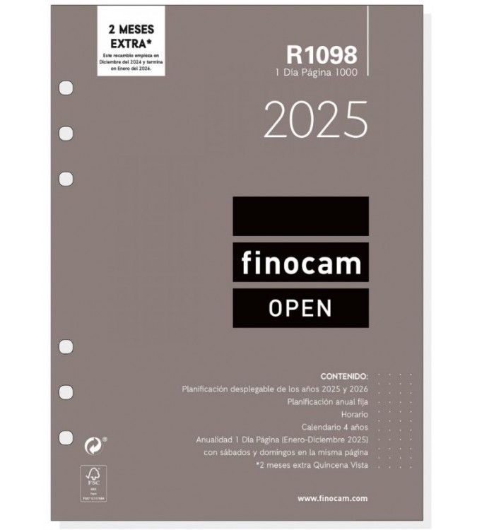 RECAMBIO AGENDA FINOCAM 2026 OPEN R1098 DIA PAGINA