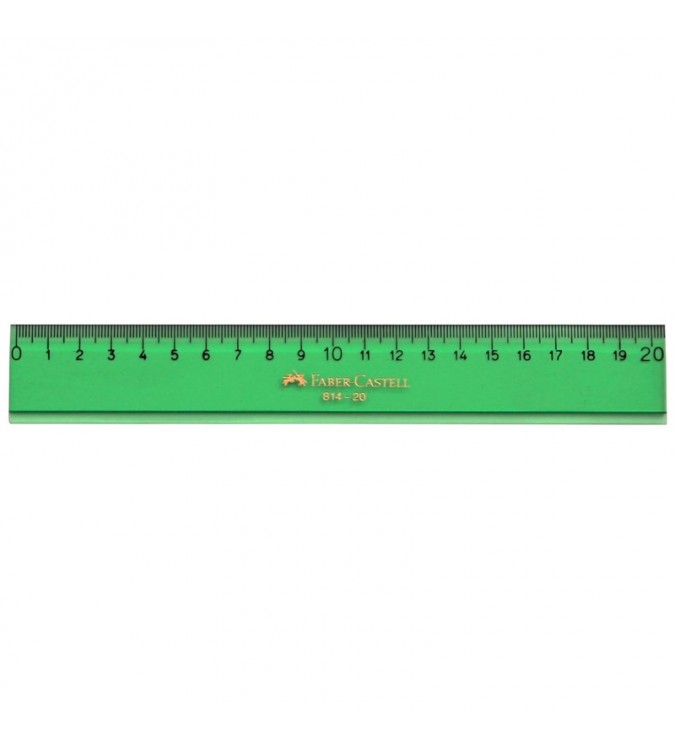 Regla de alta calidad en plástico verde transparente, cantos biselados en ambos lados, graduaciones grabadas a prueba de emborronamiento..