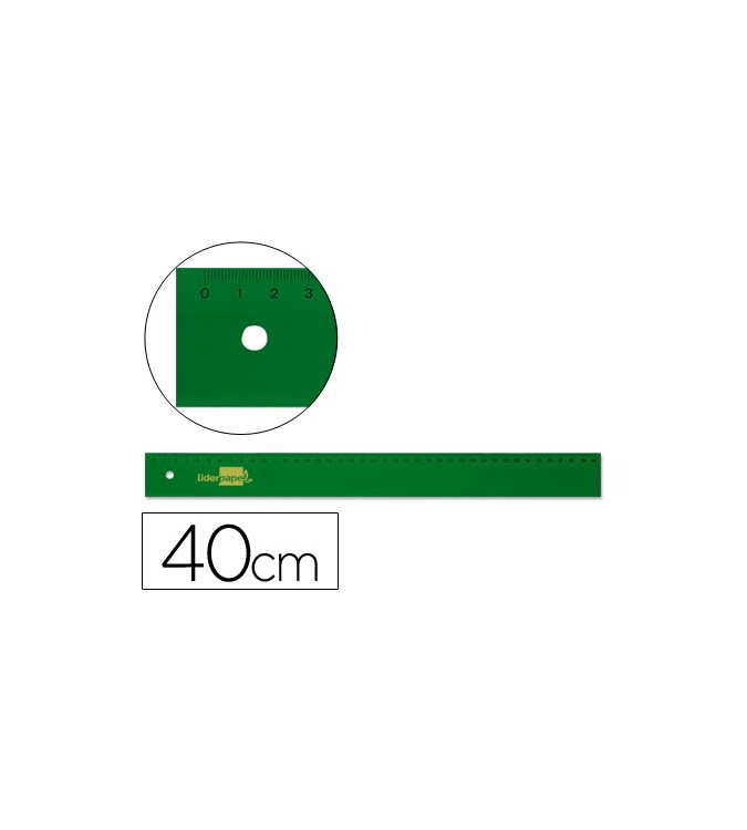 Regla liderpapel 40 cm acrilico verde. Regla de gran calidad para estudios y oficinas. Fabricado en acrilico verde, con cantos biselados a ambos lados y graduaciones grabadas a prueba de emborronamiento.