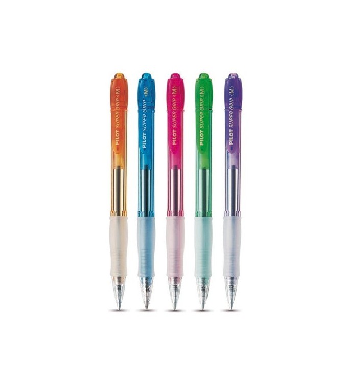 El Supergrip ahora con la tinta en 5 nuevos vibrantes colores!! Azul claro, verde lima, naranja, rosa y morado Con la suave y rápida tinta del Supergrip. Punta bola de 1.0 mm, trazo de 0.4 mm Superficies de escritura: Papel