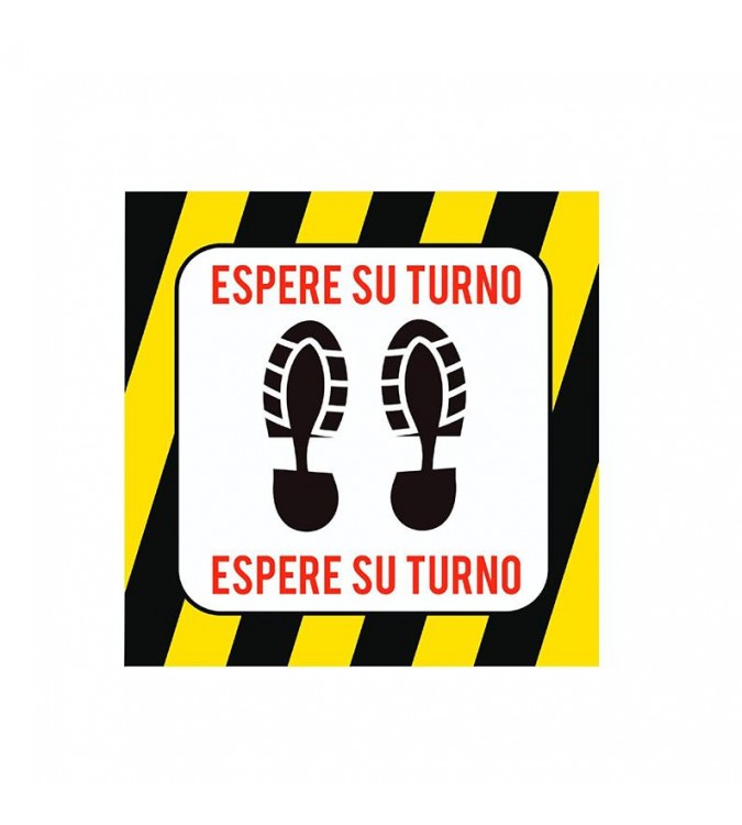 SEÑALIZACION SUELO "ESPERE SU TURNO" CUADRADO 32x32 CM AMARILLO/NEGRO VINILO REFORZADO ANTIDESLIZANTE