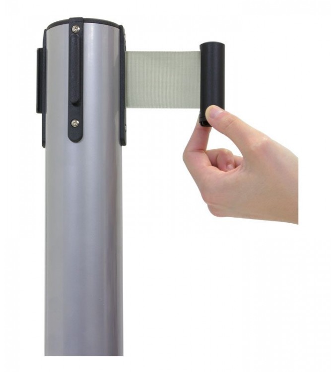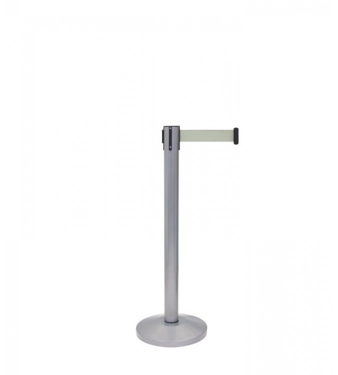 El Poste Separador con Cinta Extensible Gris es perfecto para la gestión de colas o la separación de espacios. Este producto está compuesto por dos postes separadores. Los postes separadores con cinta extensible poseen una altura de 910 mm, su base es de cemento lo que hace que tenga más estabilidad, con un diámetro de Ø320mm. Estos postes para delimitar espacios vienen con cinta extensible y están fabricados en acero. La cinta extensible retráctil es de 2 metros, y se extiende hasta llegar al terminal del otro poste para generar la gestión de la cola y hacer de poste delimitador. Las cintas extensibles tienen cierre de seguridad e incorporan 4 vías de adaptación, por lo que amplían sus posibilidades de ser aplicadas. Los postes separadores con cinta extensible son fáciles de montar y desmontar (para almacenamiento o transporte). Además, son ideales para zonas de mayor tráfico, como vestíbulos, salas de espera, aeropuertos, comida, oficinas de registro, ect.