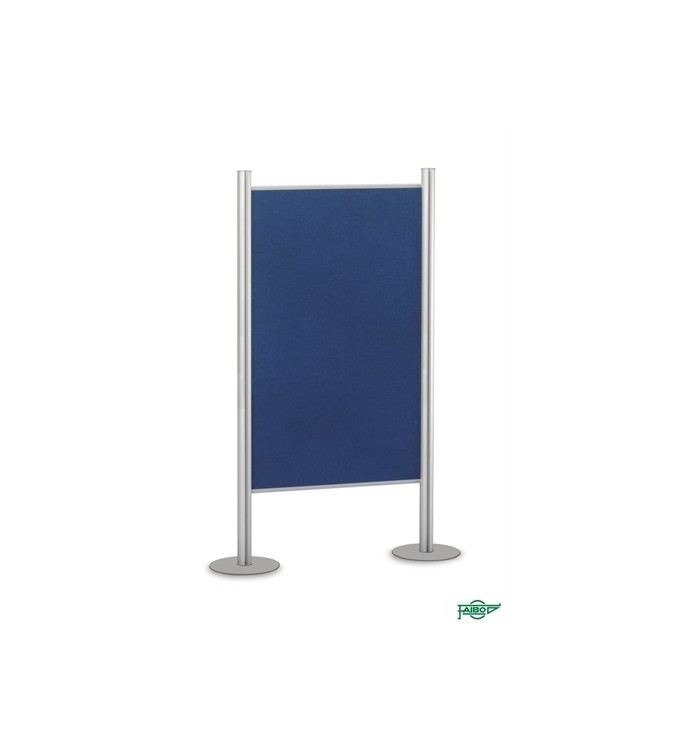 TABLERO CORCHO TAPIZADOS AZUL, MARCO DE ALUMINIO 100x150 CM. Gracias a su fácil montaje, permite poder realizar en poco tiempo el ambiente deseado, así como servir de expositor o pizarra. Especialmente diseñado para adaptar las pizarras y tableros, que se detallan a continuación, para cualquier otra medida y referencia rogamos consultar. Medida del soporte de 1950 mm. de altura, en aluminio anodizado color plata, con base metálica de 350 mm. de diámetro y 6 mm. de espesor, lacada en color gris. Se suministra con los elementos para regular la altura de la mampara. Opcionalmente se pueden instalar ruedas para su desplazamiento.