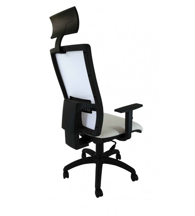 Respaldo en malla color negro, blanco, azul o rojo. Asiento disponible en toda nuestra variedad de tapizados.
