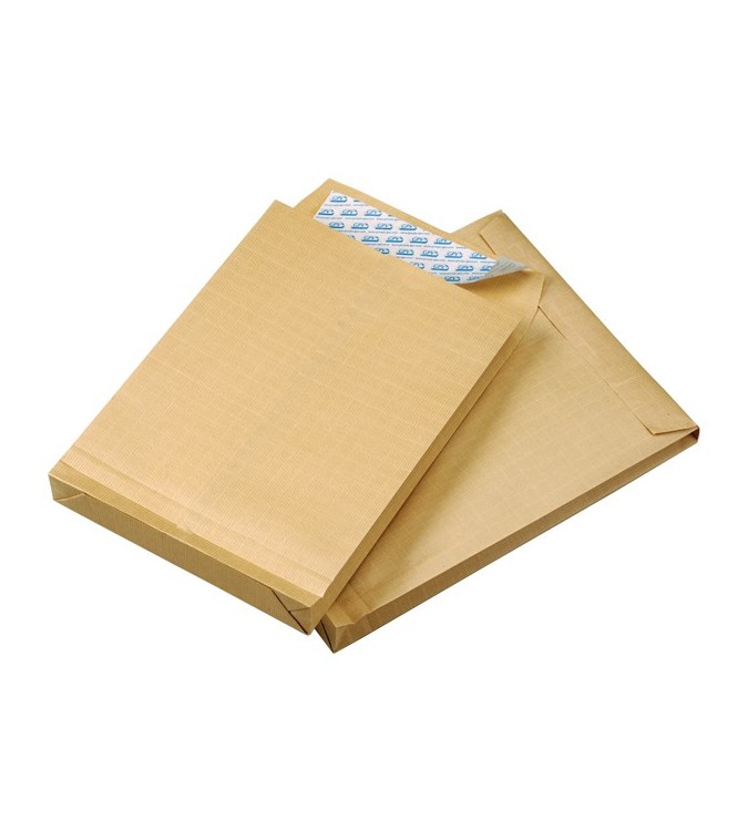 - En papel kraft marrón de 130 g reforzado con poliester.