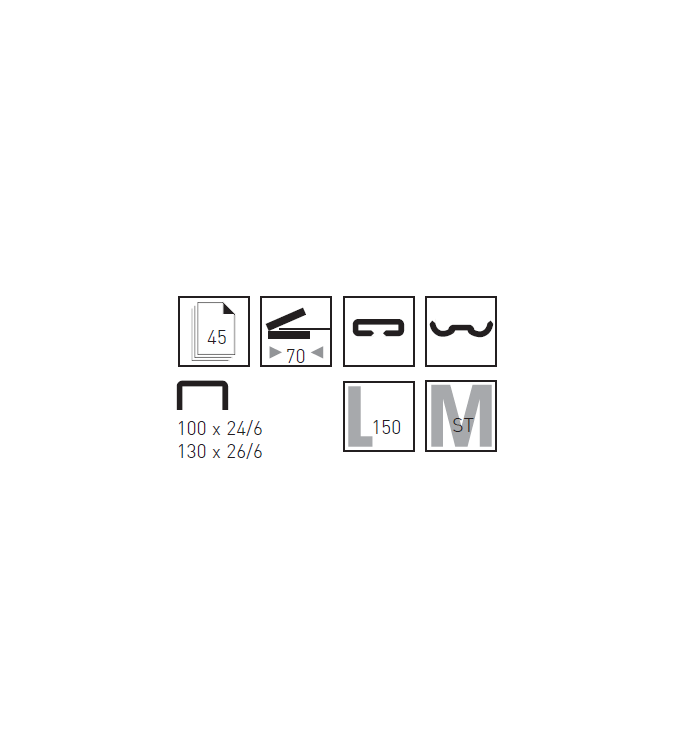 Capacidad: 4,5 mm / 45 hojas (papel de 80 g/m²) con 24/8