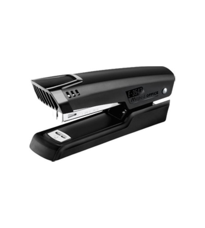 Grapadora metálica. Color negro. Con visualización de la reserva de grapas. Realiza 2 funciones: grapado y claveteado. Usa grapas 24/6 y 26/6. Capacidad de carga: 100 grapas 24/6 ó 140 grapas 26/6. Carga superior. Capacidad de grapado hasta 25 hojas. Profundidad de grapado: 61 mm. Longitud de la base: 120 mm. Medidas: 32 x 62 x 120 cm.