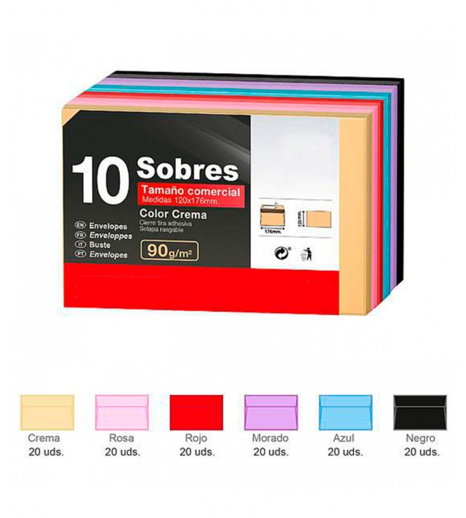6 colores disponibles (crema, rosa, rojo, morado, azul, negro).