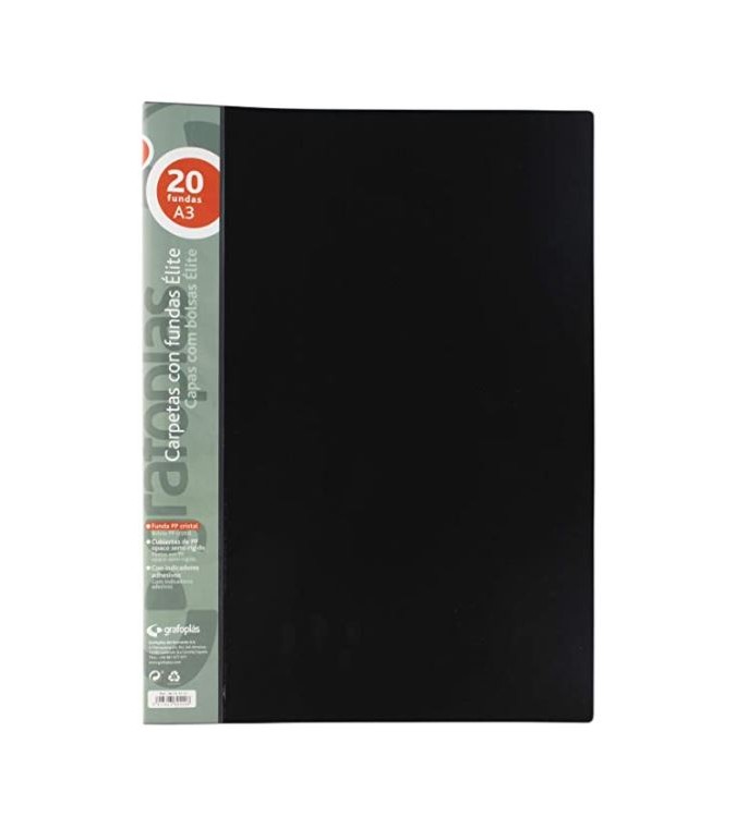 CARPETA ESCAPARATE GRAFOPLAS ELITE 20 FUNDAS A3 TAPA PERSONALIZABLE PP SEMIRRIGIDO NEGRO