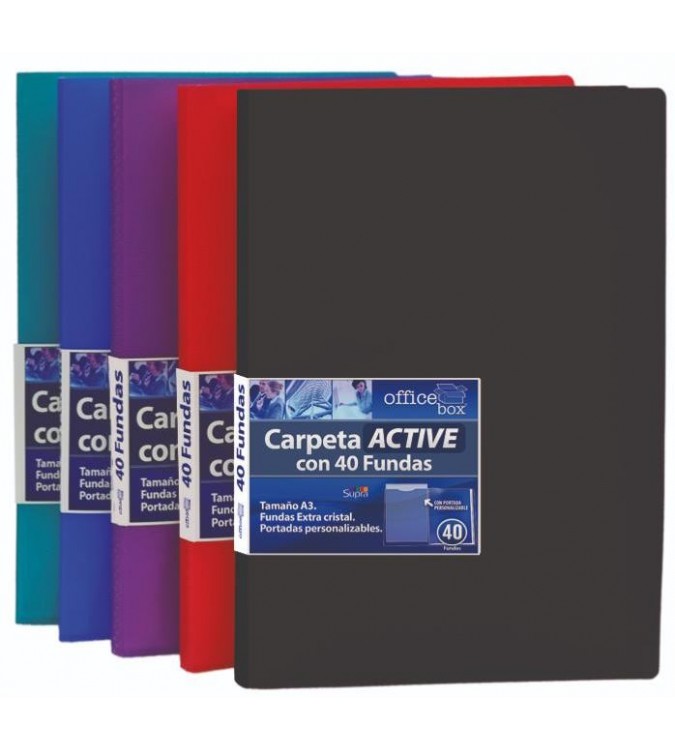 CARPETA PORTAFUNDAS A3 OFFICE BOX 40 FUNDAS TAPA PP FLEXIBLE PERSONALIZABLE COLORES SURTIDOS SUPRA