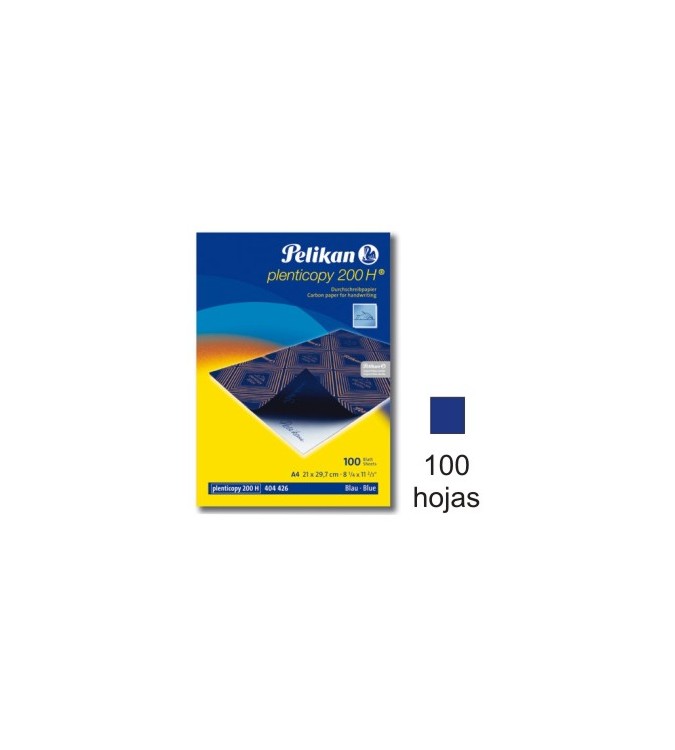 Papel carbon calco azul en paquete de 100 hojas tamaño A4 210x297 mm especialmente diseñado para escritura MANUAL, aunque puede ser utilizado en máquinas de escribir. Reverso encerado Plentcopy 200H