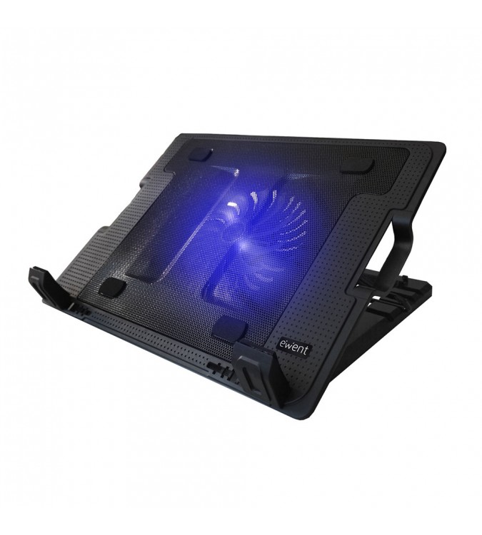 El Estante de Enfriamiento Plegable para Portátil de multi ángulo Ewent EW1258 cuenta con una superficie de malla de metal con un potente ventilador 12,5cm silencioso para evitar que los dispositivos se sobrecalienten.