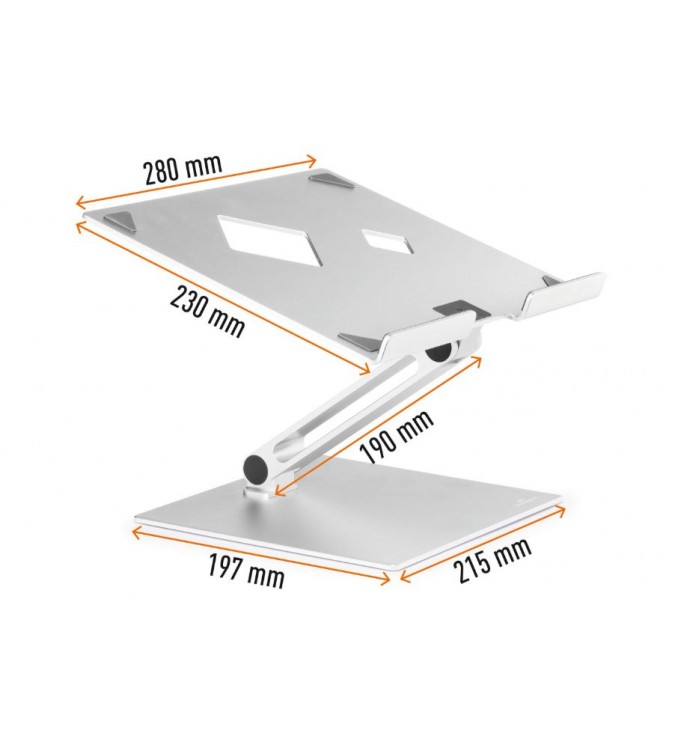 • Extremadamente resistente, fabricado en aluminio de 3,5 mm de grosor para apoyar portátiles de forma fiable y duradera