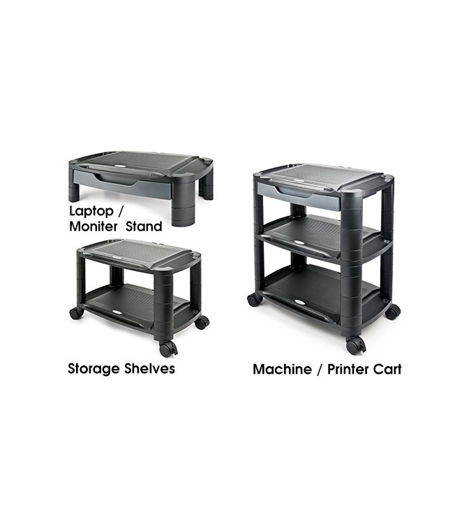 Tres estantes para almacenamiento de papel, cartuchos de tinta y más y un cajón.