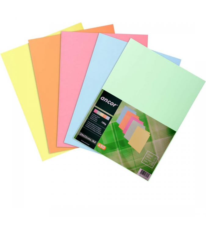 Subcarpetas de cartulina en colores pastel. Calidad 180 grs. Tamaño A4, marca Ancor.