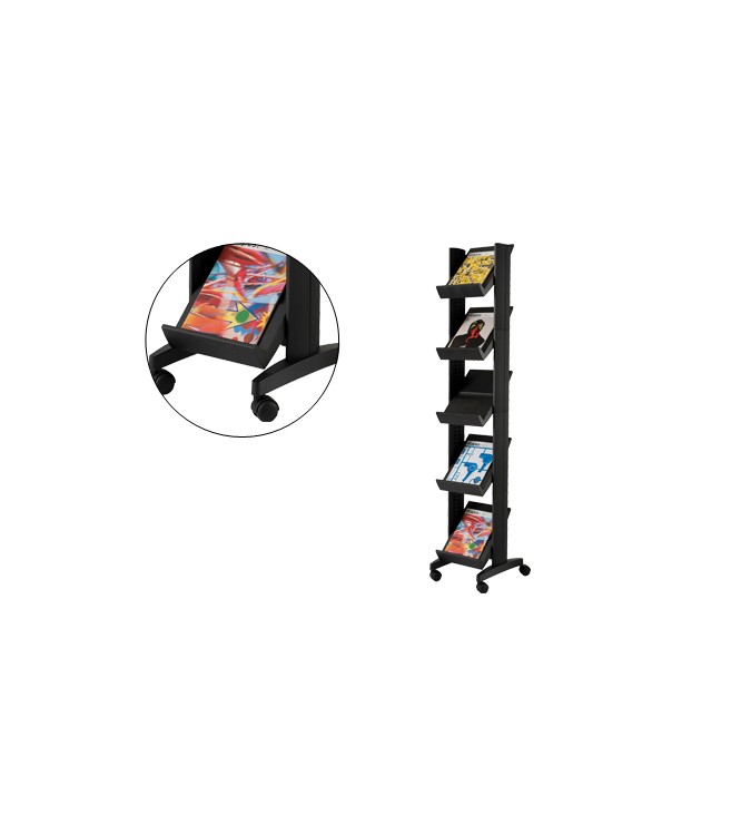 Expositor fastpaperflow de suelo movil 5 estantes de 275x327mm color negro tamaño del expositor 350x1675x385 mm.