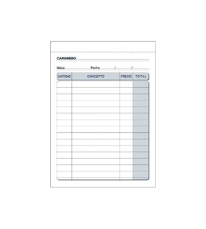 Talonarios para camareros impresos a dos tintas en papel normal y autocopiativo. Formato natural diferentes tamaños.
