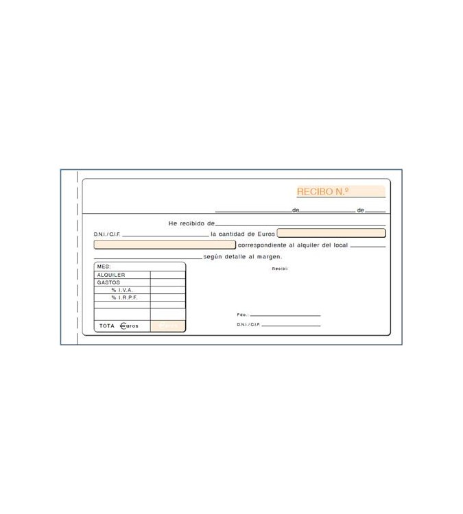 Talonarios de alquiler impresos a dos tintas, en papel normal y autocopiativo. Formato 1/3 apaisado 210 x 100mm 50 hojas x 2 (duplicado)
