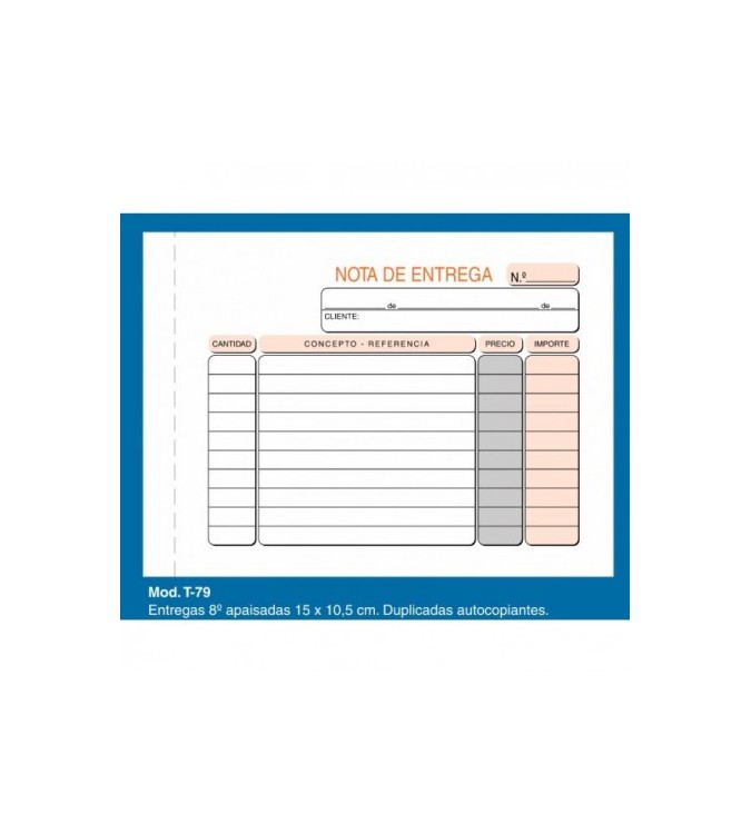 Talonarios de notas de entrega impresos a dos tintas en papel normal y autocopiativo. Formatos natural y apaisado segun ref.