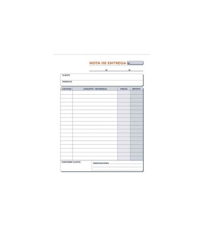 Talonarios de notas de entrega impresos a dos tintas en papel normal y autocopiativo. Formatos natural y apaisado segun ref.