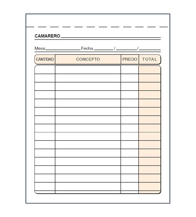 talonarios camareros octavo natural 10.5 x 15 cm 100 originales.