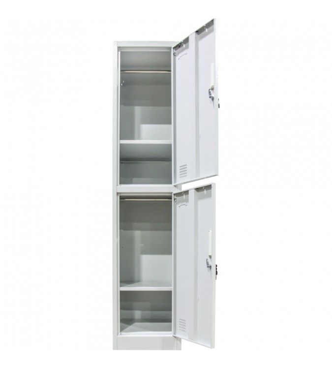 Incluye barra de acero inoxidable para colgar perchas y un estante en cada departamento.
