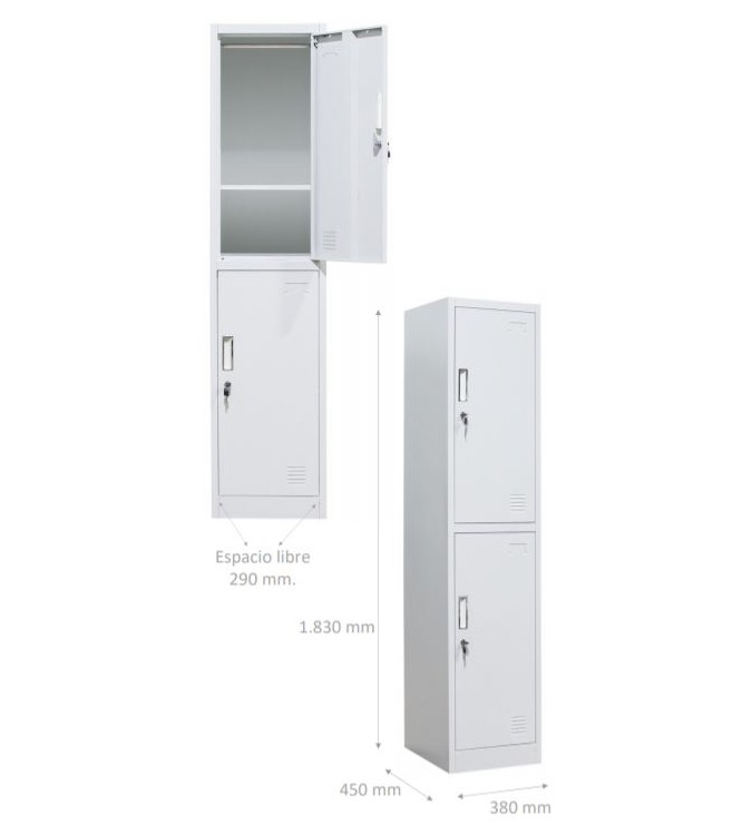 El módulo de inicio se puede montar como taquilla individual o como elemento inicial para realizar composiciones de dos o más taquillas.