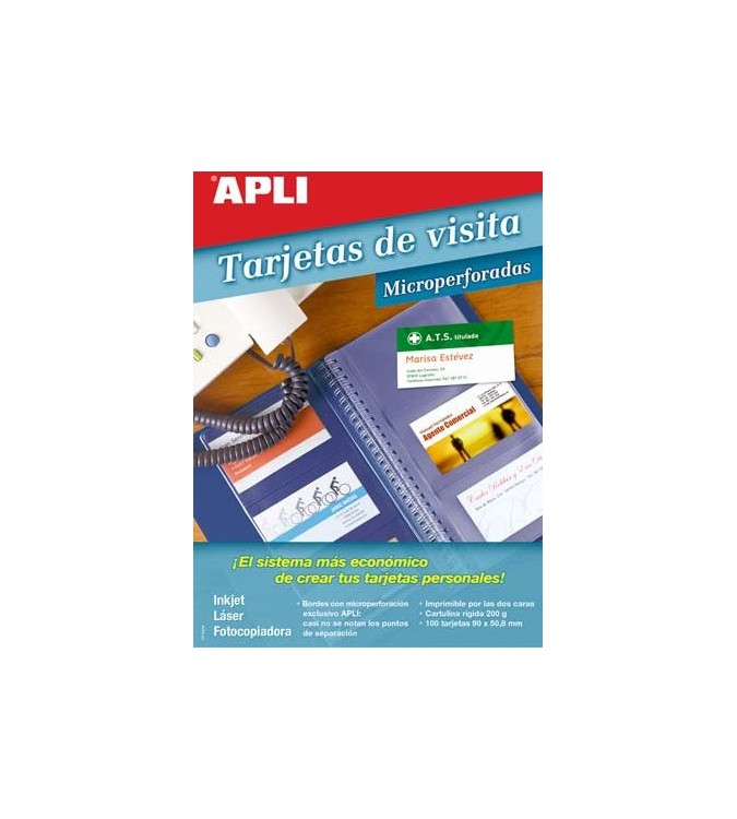 Tarjetas de visita apli microperforadas blancas para inkjet, láser y fotocopiadoras, papel de 200g. Medida 90x50,8mm